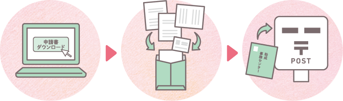 - 助成金の給付決定は書類審査の完了後、給付決定通知書を郵送で通知いたします。